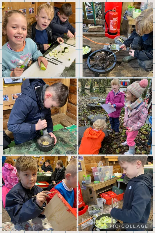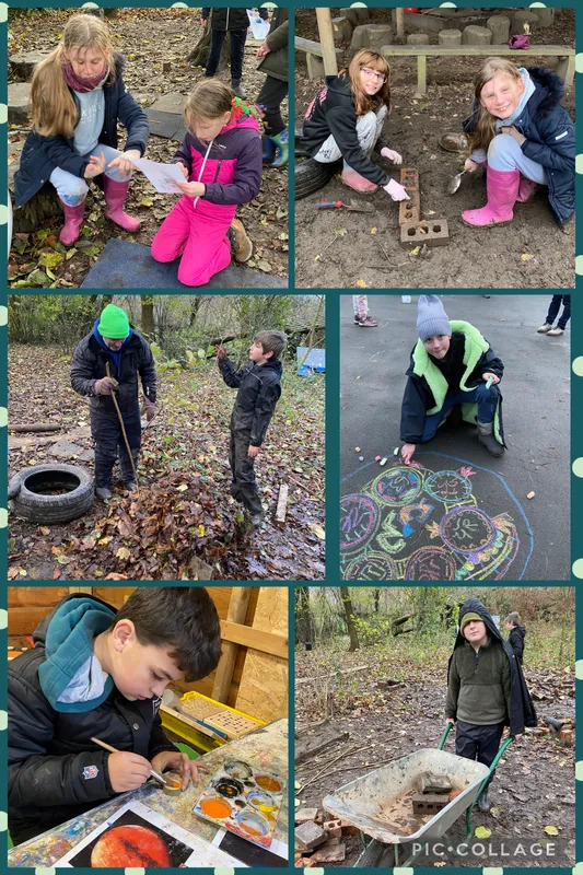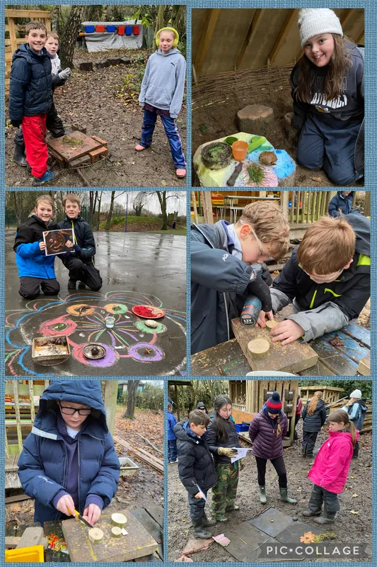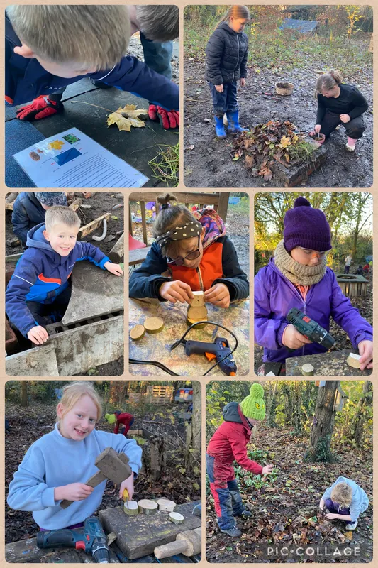 All children started their session with an instructions challenge - 12 instructions to follow to make a collage (this supported Lower School writing targets). Children needed to know, amongst other things, their left from their right, up from their down, the meaning of diagonal and how to ID a maple leaf and an alder cone.