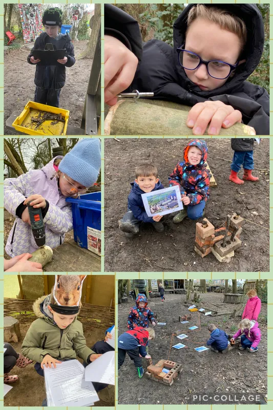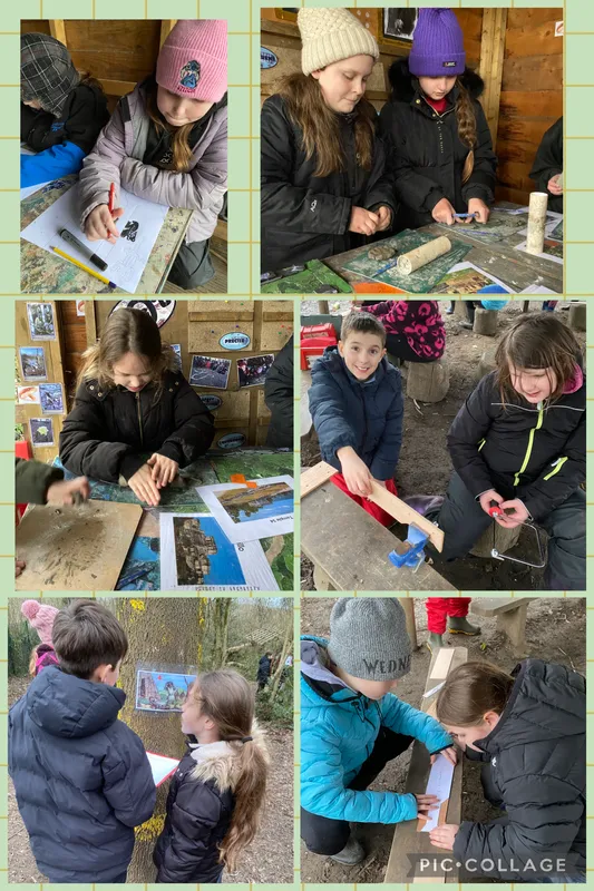 After honing skills with some 2D measuring challenges, children had to search the wood for items that needed to be measured to the nearest mm (this supported work back in the classroom in maths).