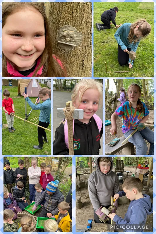 Following this, we made stone-age axes (lopper, knife and lashing skills needed here), began construction of a round house (lopper, knife and weaving skills here, in addition to a recap on properties of a circle) or made representations of tree spirits to ward off the goblin-leaf-cutters (the goblins collect leaves at this time of year to make leaf-milk to feed to the goblets (baby goblins) when they hatch (often, the collection process leads to the death of a tree – not on our watch!!).